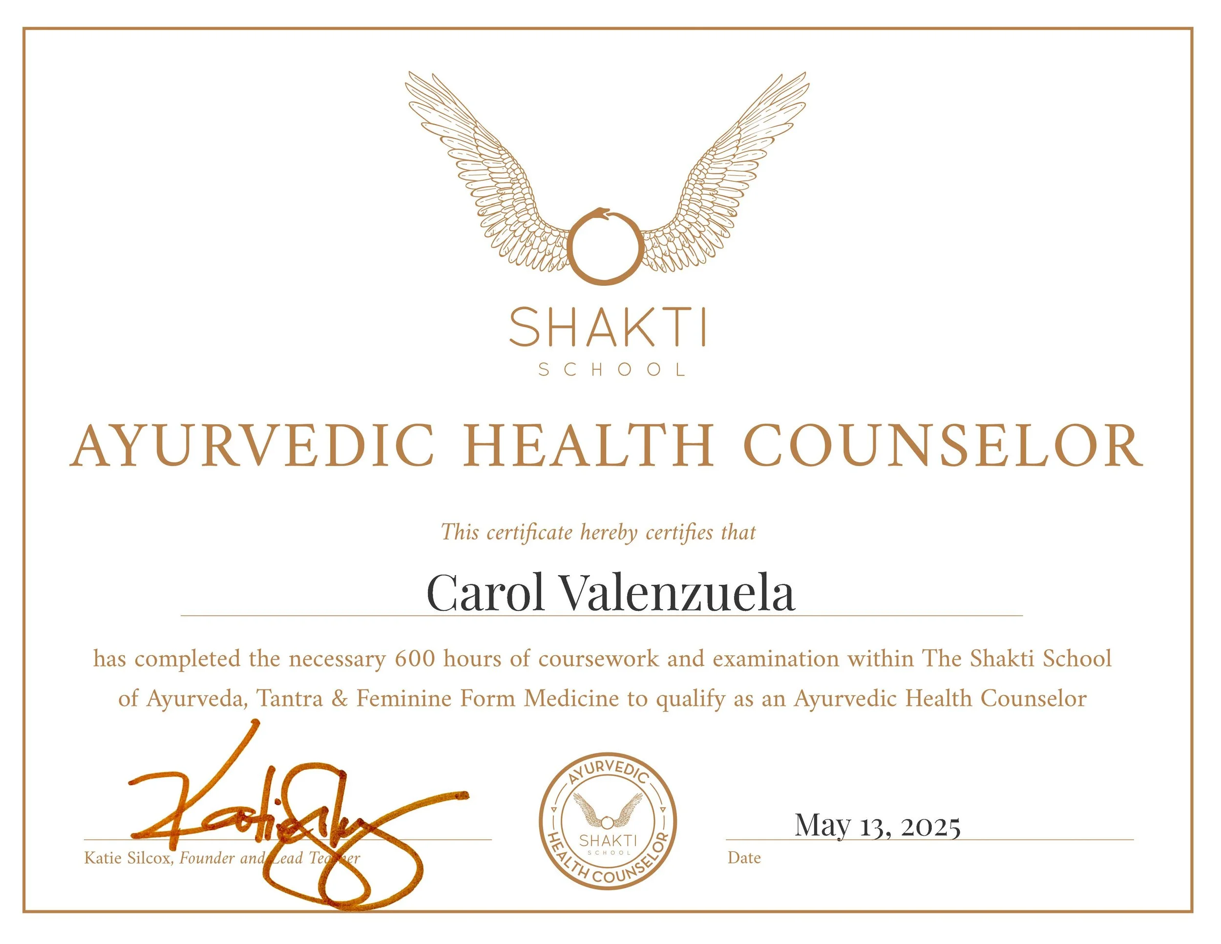 My formal training comes from two and a half years at the Shakti School of Ayurveda, Tantra & Feminine Form Medicine — but the real lessons came from applying these practices in my own life. Ayurveda gave me the tools to break the cycle of overdoing, to live with more energy and presence, and to enjoy the life I’ve worked so hard to build.